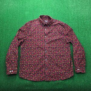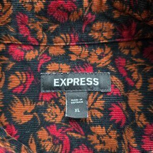 Express Shirt Mens XL Red Black Floral Corduroy Button Up Long Sleeve Casual