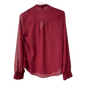 Express Shirt Size XS Sheer Button Front Long Sleeve Burgundy Career Office NEW