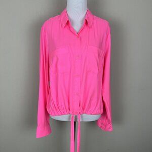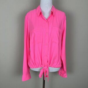 Express Shirt Top Women Large Relaxed Portofino Tie Front Button Long Sleeve L NEW