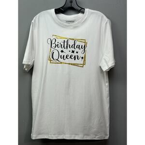 Express Shirt Womens Large White Birthday Queen Tee Slim Stretch Glitter Design