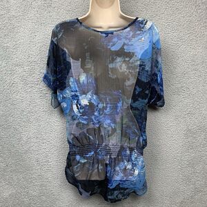 Express Shirt Womens M Blue Sheer Floral Boho Fairycore Mermaidcore