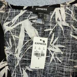Express Shirt Women's Small Black Beige Sleeve Faux Wrap Top Linen Blend Blouse