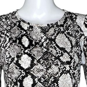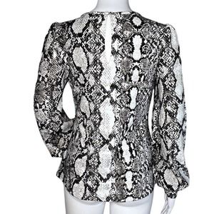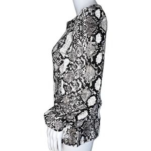 Express Shirt Womens Small Black Gray Snake Print Blouse Puff Sleeves Reptile