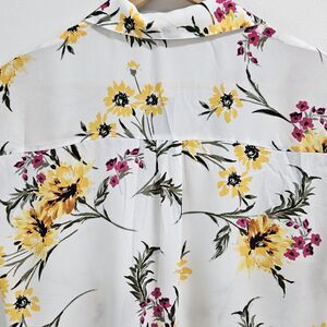 Express Shirt Women's Small White Floral Sheer Collard Top Business Casual