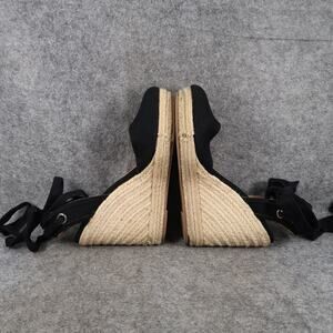 Used Express Shoes Womens 6 Wedge Sandals Espadrille Platform Black Ankle Wrap Tie