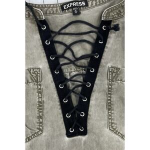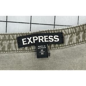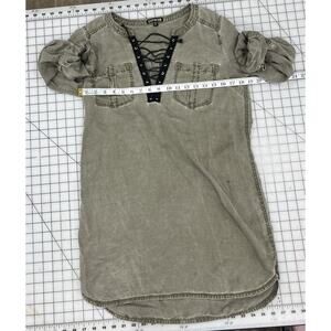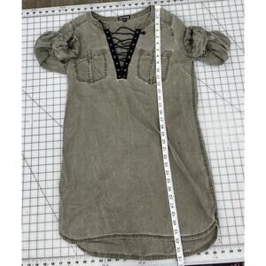 Express Short Dress Green Laced Neckline 3/4 Sleeve Cuffed Pockets Medium I9
