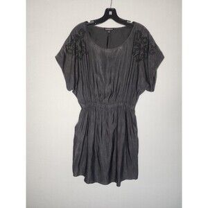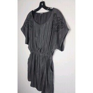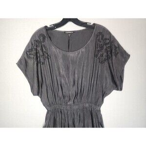 Express Short Gray Dress Womens Size Medium Dolman/Flutter Sleeve Rhinestones
