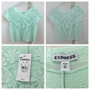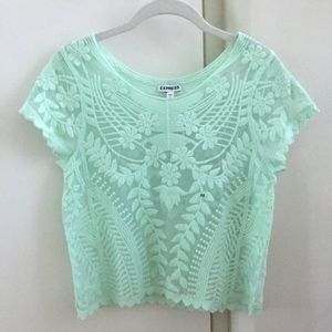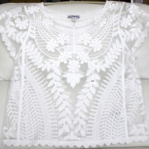 NWT sheer tops with lace. Flowery design covers both sides. Edges are scalloped. The tops are the same except for the color. Colors are white and green. See individual listings for larger photos.