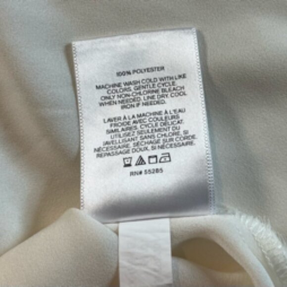 This Express short sleeve blouse in ivory with a ruched neck is a stylish and versatile top perfect for casual and business casual occasions. The mock neck and flutter sleeve design add a touch of elegance, while the pullover closure makes it easy to wear. Made of polyester, this blouse is machine washable for convenience. The XL size ensures a comfortable fit, and the regular fit and basic style make it a wardrobe staple suitable for summer, fall, and spring.