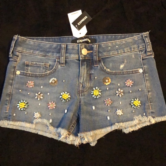 Embellished Express Low Rise Shortie. Never worn new with tags. Just don’t fit me. Size: 00 Condition: NWT