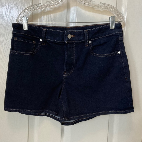 Size 10-Express Dark Denim Shorts-midrise-button fly
