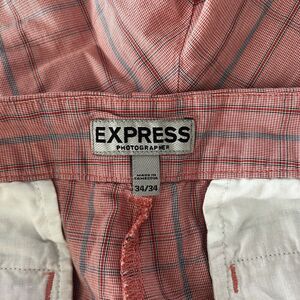 Express Shorts Photographer 34 Mens Pink Blue Plaid Preppy. Condition is Pre-owned. Shipped with USPS Ground Advantage.