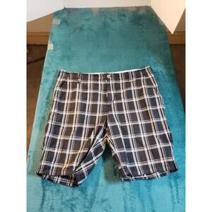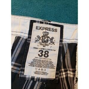 Express Shorts Sz 38 Mens Black Twill Preppy Cotton Plaid Bermuda 9 Inch Inseam