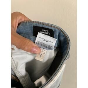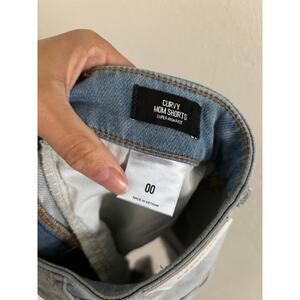 Express Shorts Women's 00 Curvy Mom Super High Rise Light Blue Raw Hem Denim