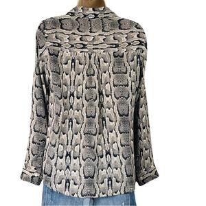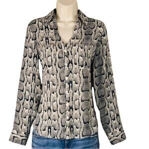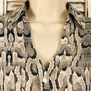 Express Signature Portofino Button Front Blouse Snake Skin Print Tan Blue Cream