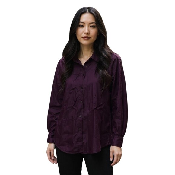 Express Silk Button Down Blouse Burgundy Size M Vintage