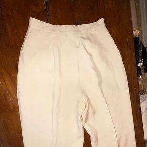 Trousers, pants, bottoms, silky, pleated, high waist, cream, tan, beige, modern, dressy, pleated, business, work, bridal, wedding, cocktails, lined, relaxed,