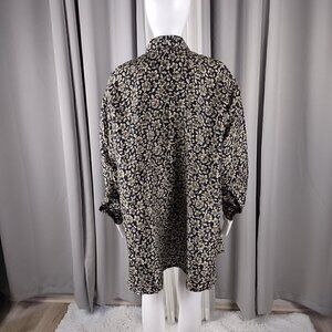 Express Silk Womens 100% Silk Black, Brown Floral Pattern Button Down Dress Sz S