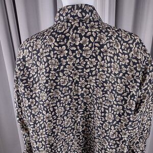 Vintage Express Silk Women's 100% Silk Black, Brown Floral Pattern Button Down Dress Size S