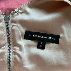 Express Silk pink and cream ruched color lock bodycon mini dress. With hidden zipper in the back. Super soft and luxurious fabric. Small snag in the bottom back, hardly noticeable. In great overall condition.