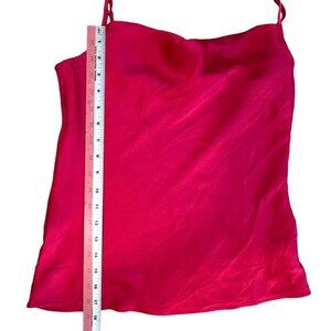 This luxurious red-pink silky cowl neck cami top from Express offers an elegant draped neckline with adjustable straps for women's small sizes.