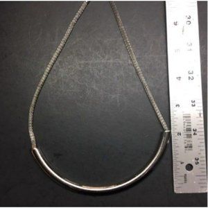 Silvertone curved tube retro express brand necklace! #SilverExpressNecklace #SilverTubeNecklace
