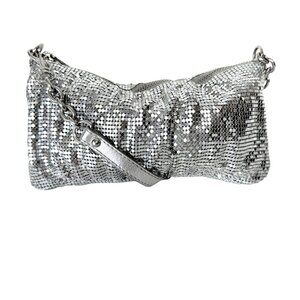 Express Silver Mesh Shoulder Bag With Chain Strap Shimmer Evening Party Clutch