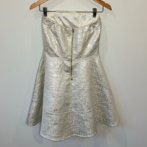 Express Silver Metallic Fit & Flare Mini Strapless Cocktail Dress (sz 2)