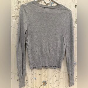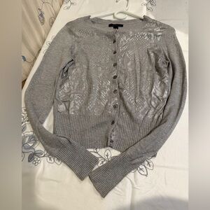 Chic silver cardigan with button-up front. Features a stylish pattern. Ideal for layering.