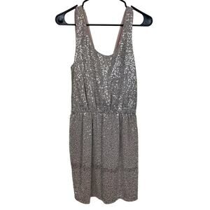 Express Silver Sequin Sleeveless Dress With Deep V-Back & Elastic Waist, Medium
