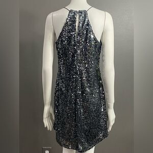 Express Silver Sequin Spaghetti Strap Razor Back Flowy dress. Size S/P