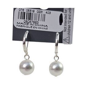 Express Silver-Tone Faux Pearl Drop Earrings For Women Leverback Closure Elegant & Timeless Design