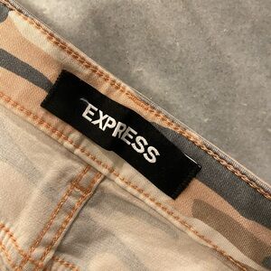 Express Size 12 Shortie Mid Rise Stretch Punk Gray Camo Cut Off Cargo Shorts