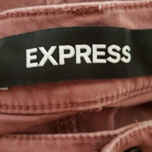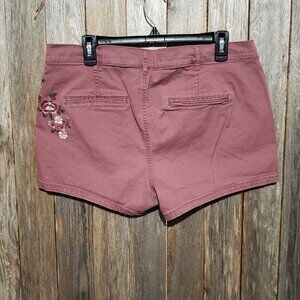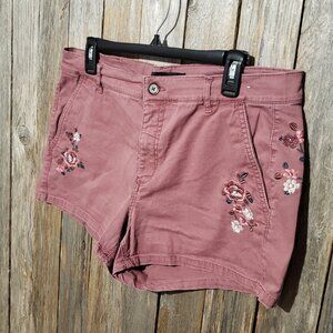 Express Size 12 Shorts Pink Mauve Embroidered Floral Mid Rise Pockets Stretch
