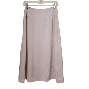 Express Size 4 Bone Colored High Waisted Satin Front Slit Midi Slip Skirt