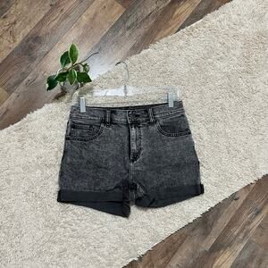 Dark gray, acid wash, cuffed, mid rise, shortie shorts