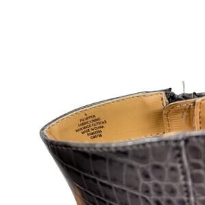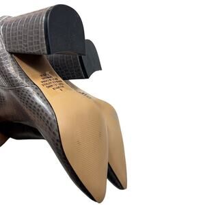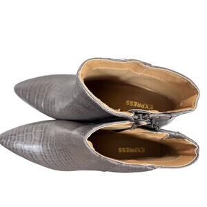 Express Size 6 Gray Croc Embossed Ankle Boots Block Heel Pointed Toe Zipper