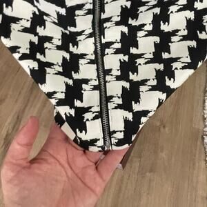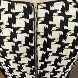 Excellent condition womens size 8 black and white graphic bold print bodycon style dress. Features full zipper on the back, very flattering fit