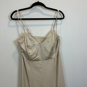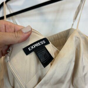 Express Size Large Satin V-Neck Back Cutout Silky Dress Champagne MIDI Slip