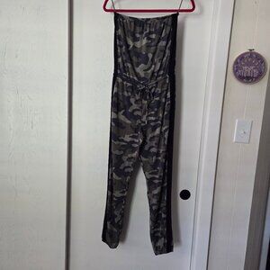 Express Size S Strapless Green Camouflage Pant Jumpsuit Pockets Camo Sleeveless