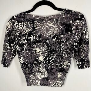 Express, Size Small, White Black Floral Shrug Cardigan, Y2K, Cropped, Knit, EUC