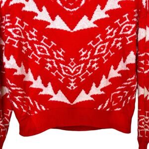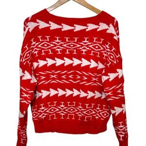 Express Size XS Cotton Blend Red and White Abstract Cozy Ski Sweater