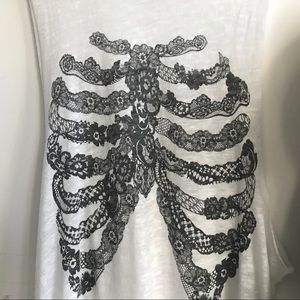 Beautiful skeleton muscle tank with an illustration of a rib cage using lace and floral. Lightweight material so perfect for lounging, summer, or working out. Size small but could also probably fit a medium. #express #hottopic #alternative #skeleton #dollskill