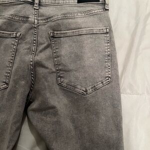 Women’s express stretchy, gray jeans, mid rise, skinny size 10 R barely worn zipper in the front to pockets in the back. This color is exquisite and amazing to style with different outfits. Please note the picture there is a little light stain you could barely see it but it is, definitely worth buying these
