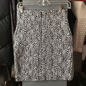 Express | Black and white strokes detail | Size 0 | Back zipper and clasp detail | 68% Rayon 27% Nylon 5% Spandex | Material is form fitting, stretchy and comfortable | ❌ Trade