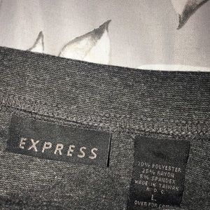 grey stretchy mid length grey skirt w front slit