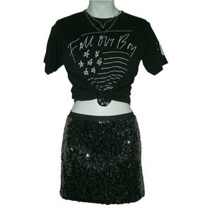 Express Skirt Gray Sequin Mini Stretch Rock Concert Festival Alt egirl Goth Glam