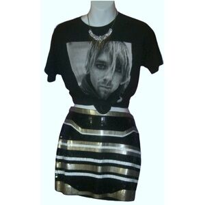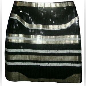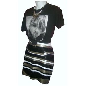 Express Skirt Sequin Stretch Mini Black White Gold Rock Festival Concert Boho