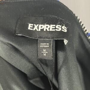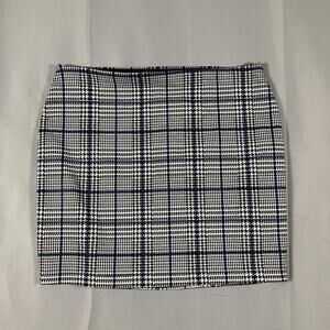 Express Skirt Womens Medium Blue Black White Plaid Houndstooth Pull On Career