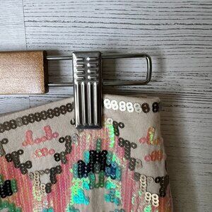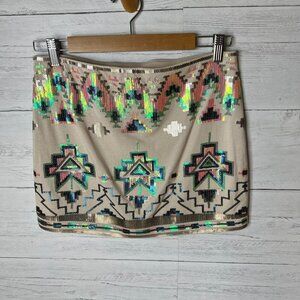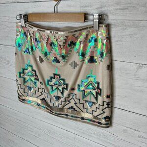 Express Skirt Womens Size S/P Tan Sequin Aztec Mini Sparkle Glam Summertime